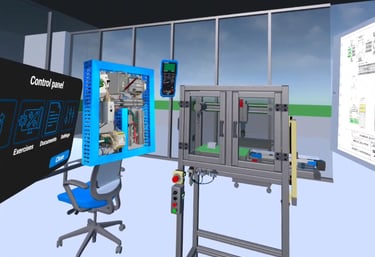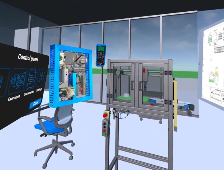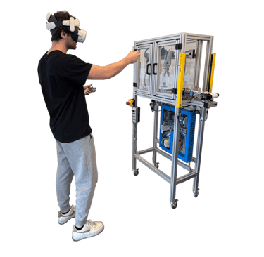 From symptom recognition to fault finding and repair, DiagnozVR propose a fully functional pick & place machine with safety components, sensors, conveyor, control panel & controllers.